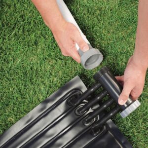 Easy set up with included adaptors compatible with 3.2cm / 1.25” and 3.8cm / 1.5” hoses An economical and environmentally friendly way to heat swimming pool water Increase swimming pool water temperatures by approximately 3 ~ 5°C (5 ~ 9°F) depending on weather condition Provides superior durability and longer life time by using 0.9mm pvc High-tech material provides superior resistance to weather and other abrasive agents Heating area of 1.46m2 (15.72 ft2) Can be used in multiples to work together for different size pools